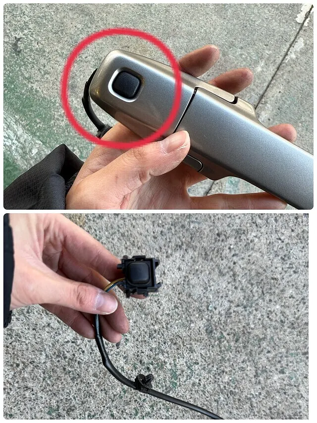 次に考えられるのは運転席側のリクエストスイッチ(ドアノブについているボタン)。特に車両側のボタンを押した際に症状が出ることが多く見受けられたので交換しました。結果、交換後は症状が治まったので原因はリクエストスイッチの不具合でした。